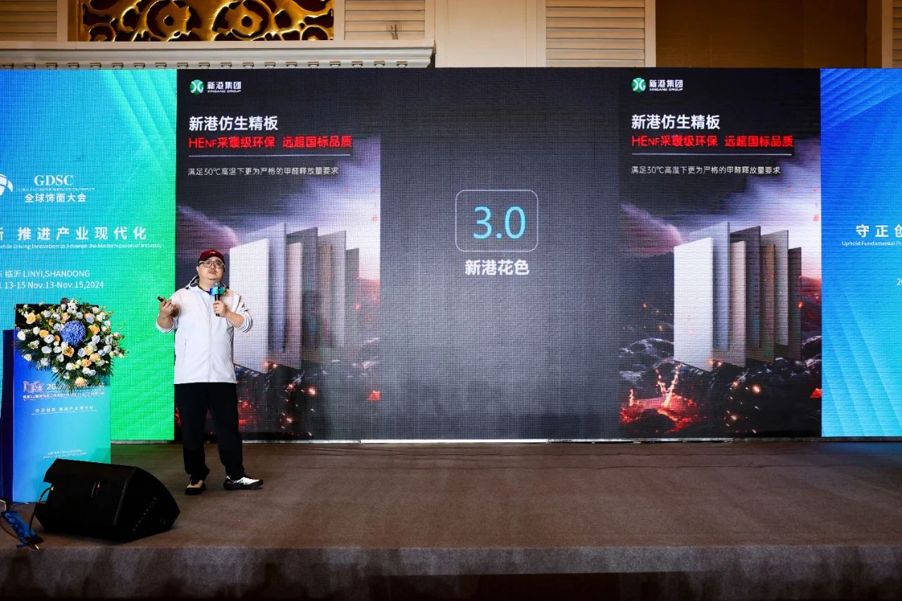 在这场覆盖面超广、含金量极高的行业盛会中,新港集团作为大会承办方,以崭新的面貌和姿态现身,带来独树一帜的仿生科技与饰面实力,吸引了来自世界各地与会者的目光,点燃现场氛围。