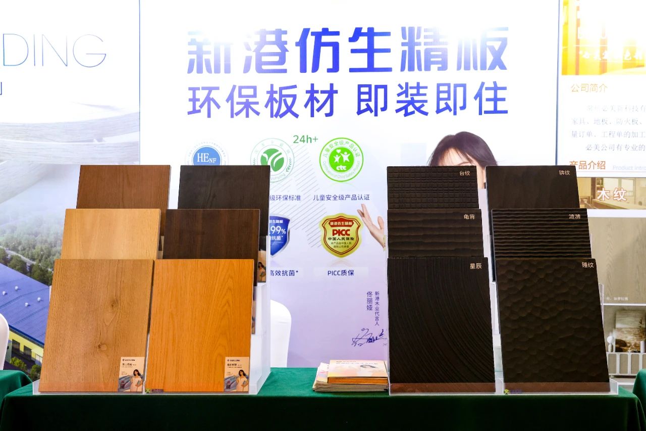 此外,一直以来深受关注的新港仿生海洋多层板、新港2.0花色也在盛会现场逐一展现。新港仿生海洋多层板创新采用新港仿生胶,将海洋中的贻贝粘附原理运用到木质人造板胶合中,成功突破传统多层实木板在甲醛超标、防水欠佳及功能缺失等方面的瓶颈,打造功能性应用板材,实现产业的赋能与革新,在业内扛起品质大旗。