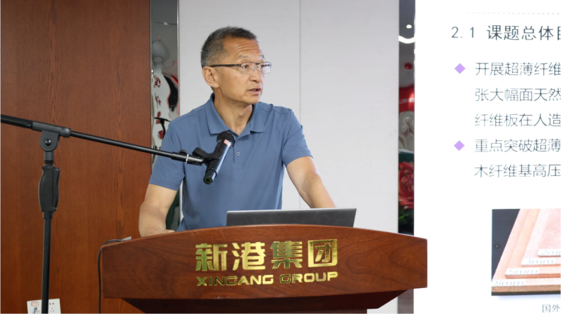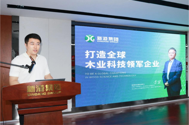 新港集团董事长魏孝新首先对各位领导和专家的到来表示热烈欢迎,新港集团作为家居板材研发制造企业,始终坚持创新发展,力求在人造板行业做出革新产品,为行业高质量发展做出自己的贡献。