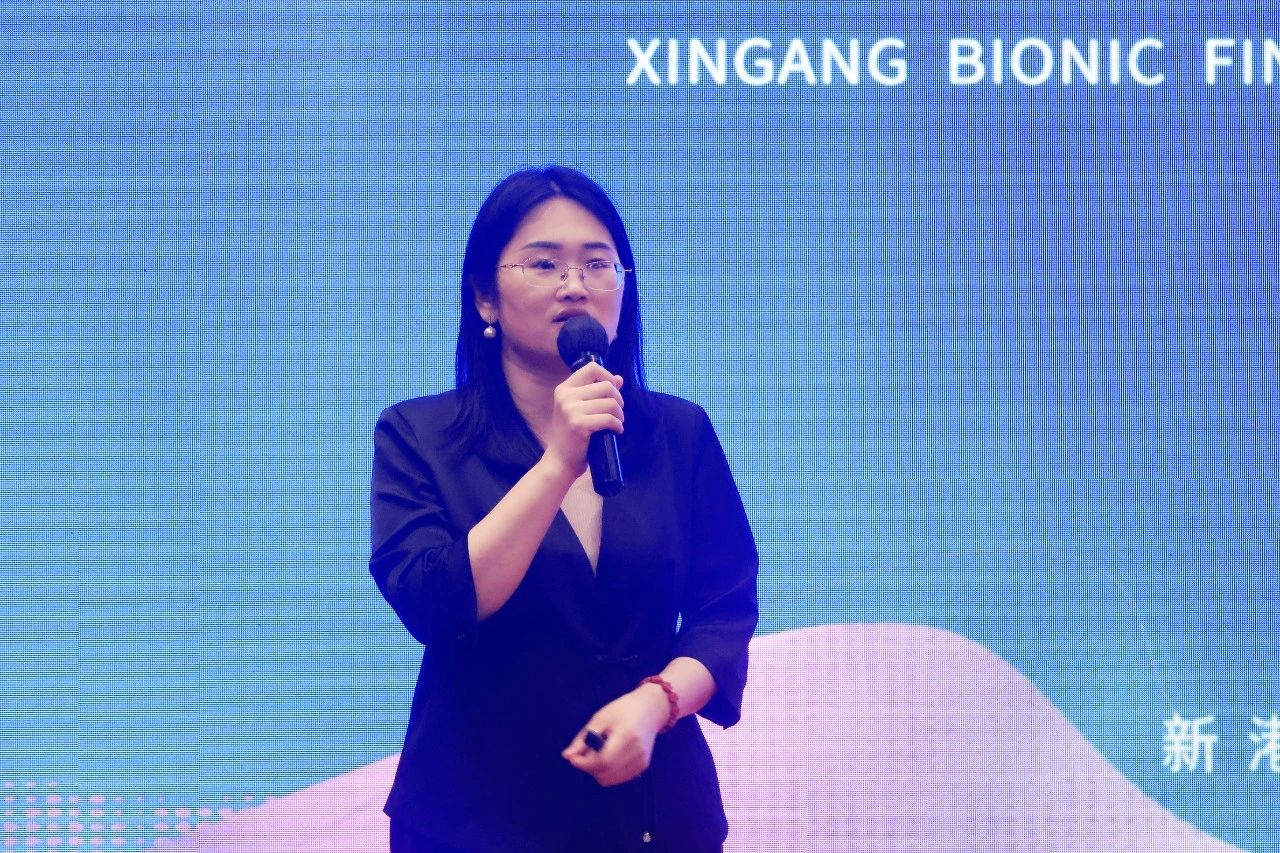 新港集团研发总监闵德秀、研发一部主管孟德森针对新港仿生胶的研发原理和功能性应用深入讲解,从多角度展示仿生绿色产品的高环保性、高防水性等特色优势。