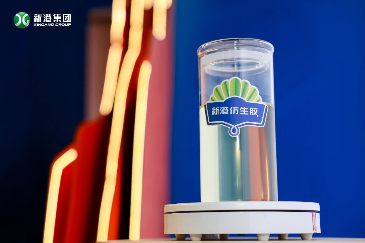 展区内,新港核心科技——新港仿生胶引发行业来宾们的热烈讨论。