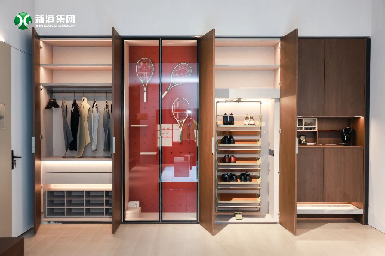 除了环保科技,新港与华为鸿蒙联合研发的除菌黑科技,更展现了跨界融合的无限可能。在仿生精板自带抗病毒属性的基础上,进一步叠加内部物品除菌功效,正如现场来宾所言:“这就像给家居装上了‘免疫系统’,安全又安心。” 从环保突破到智能守护,新港打出“科技+ 美学”组合拳,让智能家居真正融入生活,赋予家居“智慧生命”。