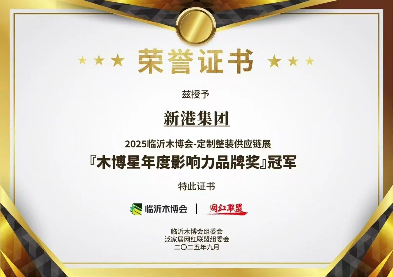 在展会最受关注的「木博星年度影响力品牌奖」评选中,新港集团凭借出色的品牌实力,以断层优势拿下冠军,遥遥领先,尽显行业标杆风范。