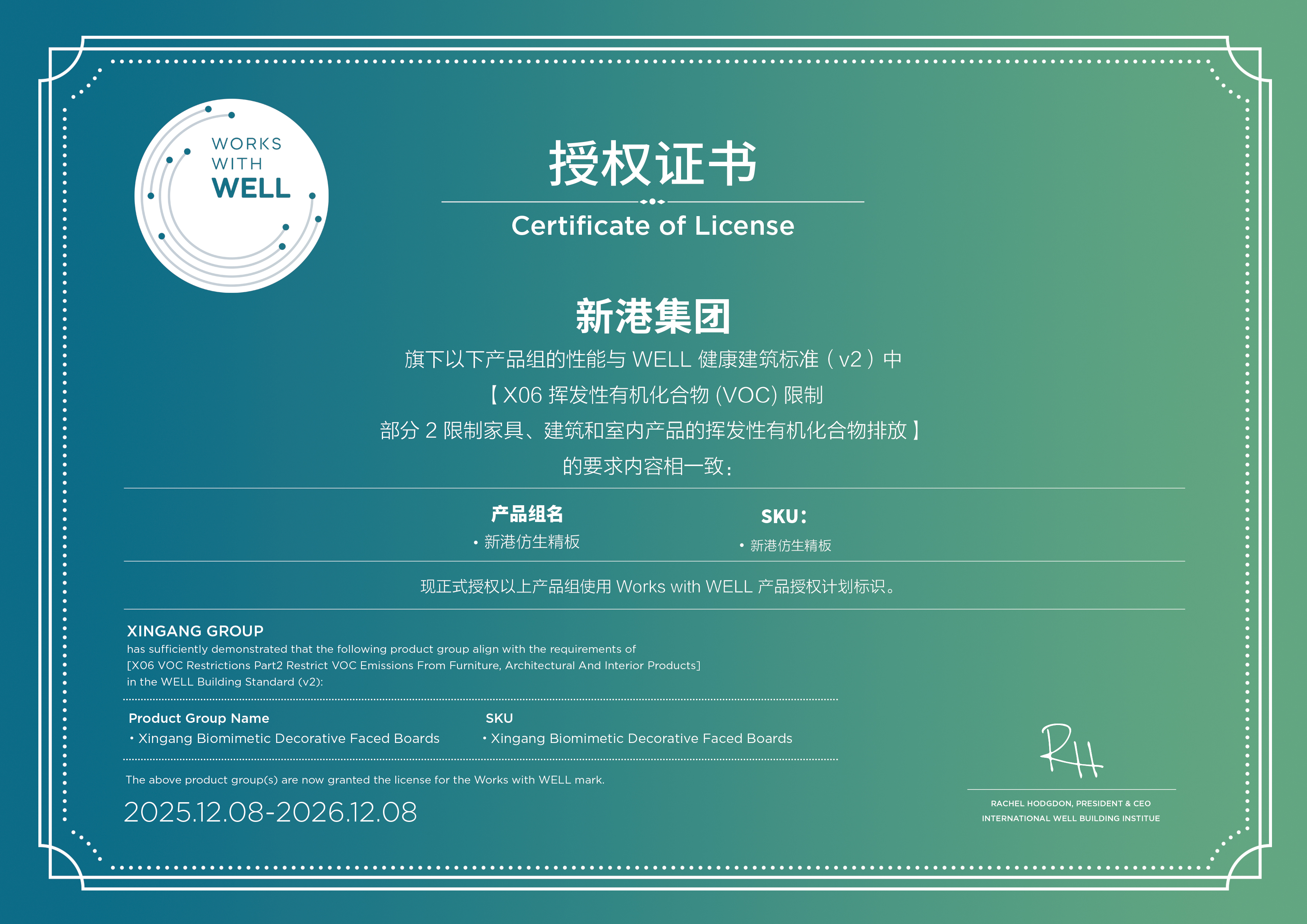 新港仿生精板通过WELL产品授权许可